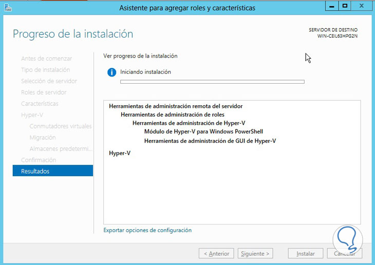 Pulsamos Instalar para iniciar nuestro proceso de instalación del rol.
