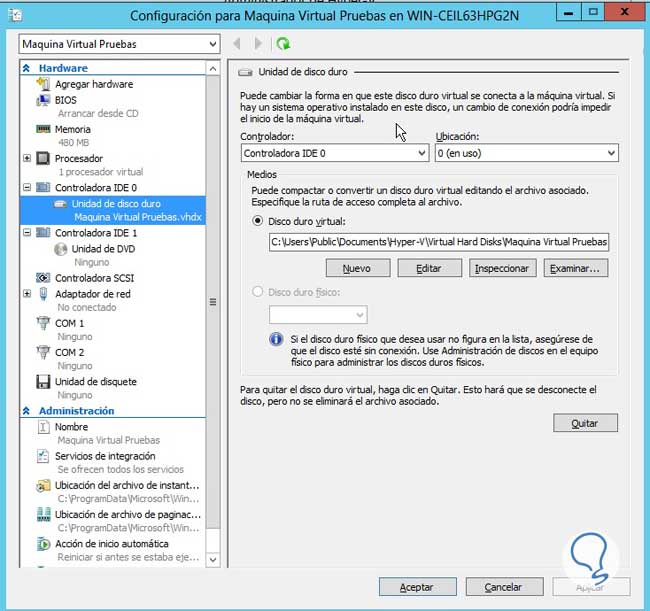 Finalmente damos clic en Aceptar. Desde este mismo menú podremos gestionar nuestros discos duros virtuales.