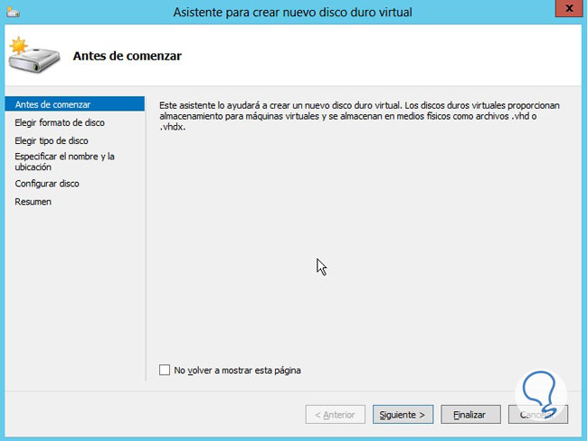 Allí se abrirá el asistente de creación donde nos muestra información relacionada con la creación de dichos discos: