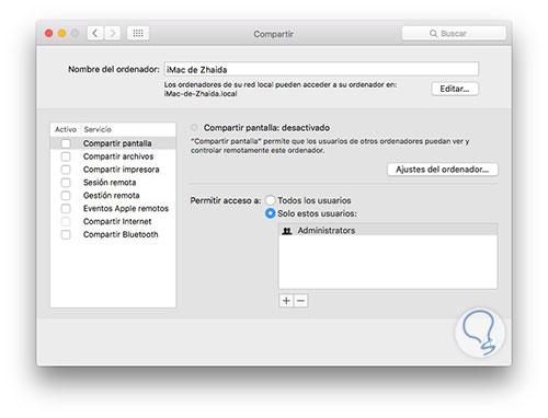 Aquí debemos acceder cuando tenemos que compartir por ejemplo la pantalla de nuestro Mac o iniciar algún tipo de sesión remota.