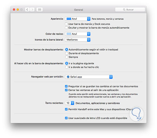 Dentro de la pestaña “General” vamos a encontrar las configuraciones en cuanto a apariencia, barras de desplazamiento, navegador web… También vamos a poder configurar ciertos detalles en cuanto a los documentos.