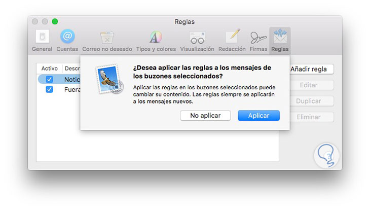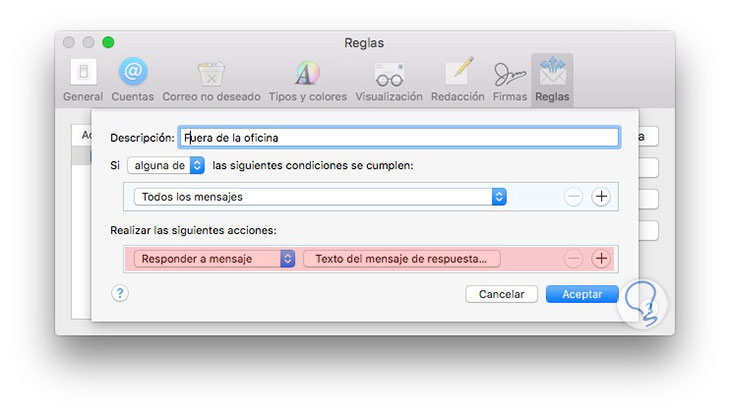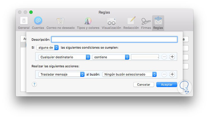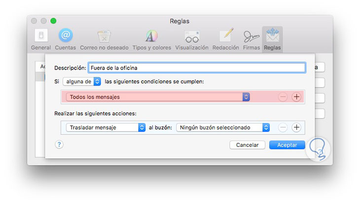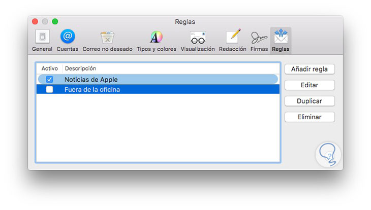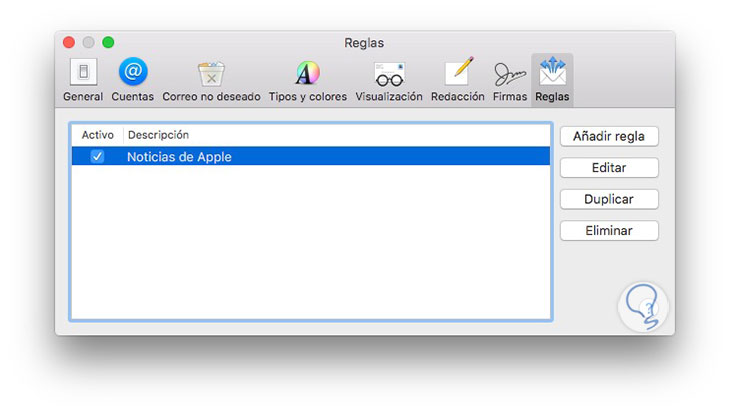 Lo primero que tenemos que hacer es abrir la aplicación de Mail y dirigirnos a las preferencias. Una vez dentro de las preferencias, tenemos que situarnos en la pestaña de reglas.
