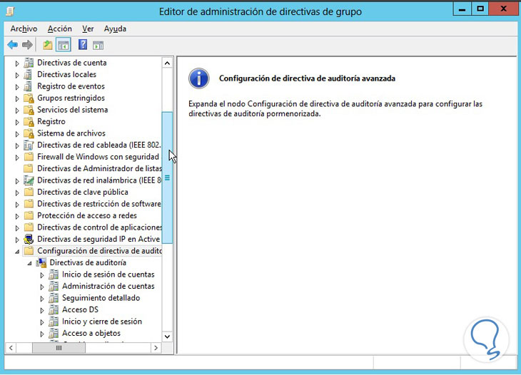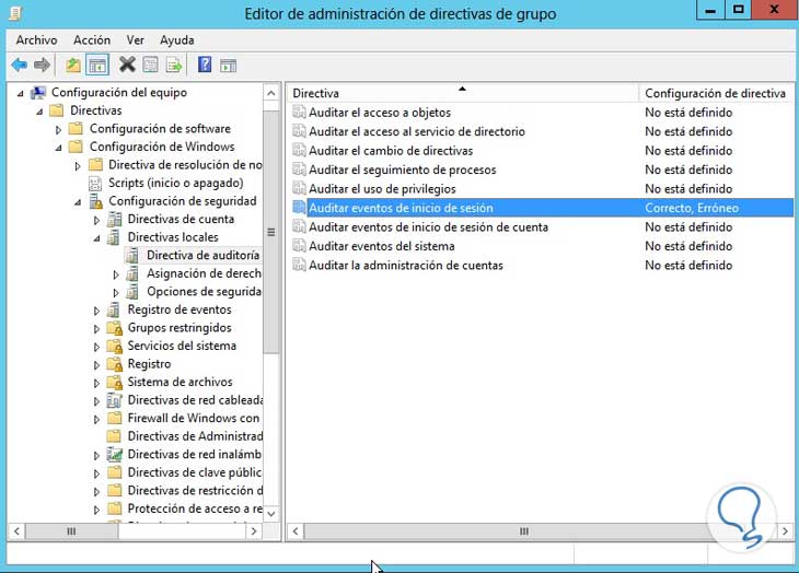 Debemos especificar qué tipos de eventos de sistema deseamos auditar usando las políticas de grupo.