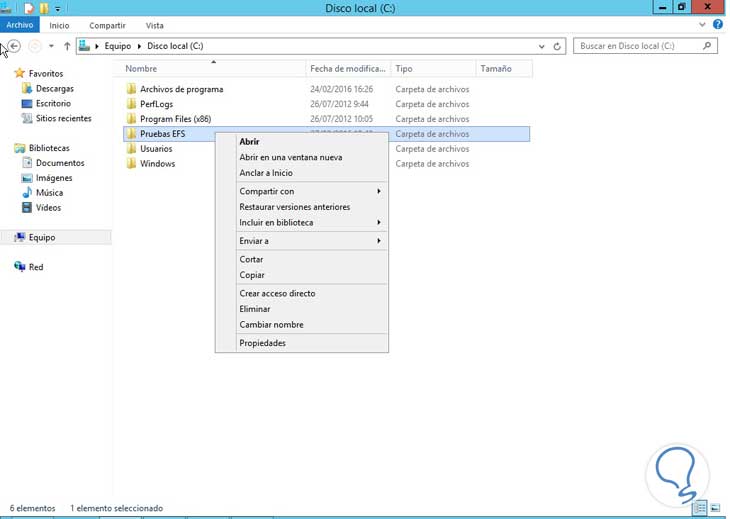 Damos clic derecho en la carpeta que deseamos asignarle auditoria y elegimos la opción Propiedades.