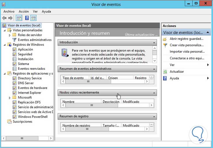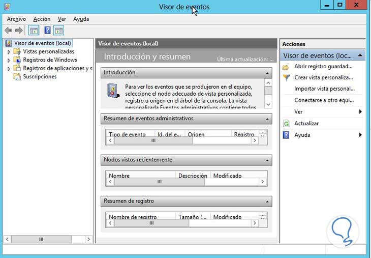 5. Acceso al Visor de Eventos WServer 2012