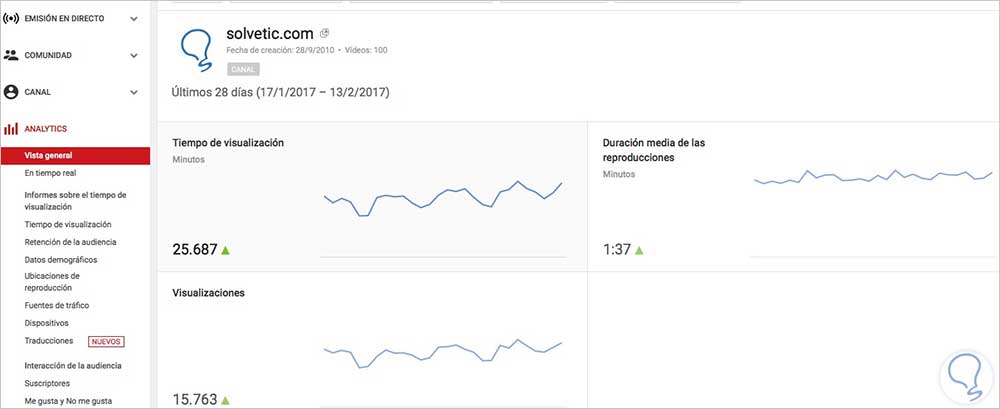 Puedes verlo para todo tu canal, o por cada video tal como se hace en las secciones descritas anteriormente.