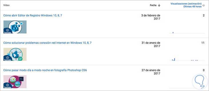 Abajo están las “Visualizaciones”, que es la cantidad de veces que las personas han visto los videos de tu canal.
