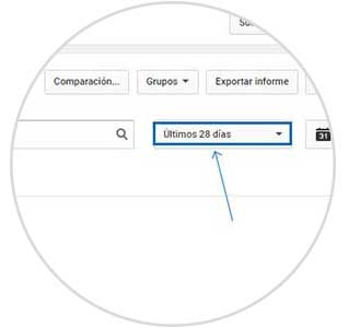 Lo primero que verás dentro de las analíticas de YouTube será la pantalla de “Visión general”, donde podrás escoger el período de tiempo que deseas ver. Por defecto, se te mostrarán las analíticas de los últimos 28 días, pero tú puedes ajustarlo al período de tiempo que prefieras.