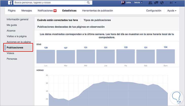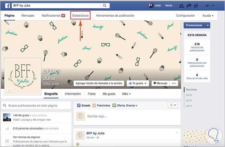 Para ello, haz clic en la pestaña de estadísticas de tu página de Facebook