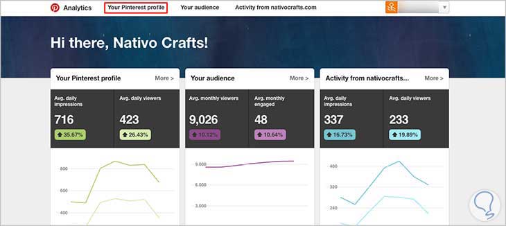 Ahora suma los “Repins” (34) y los “Clicks” (37) y sabrás el número de engagements que recibió tu perfil de Pinterest: