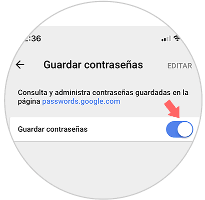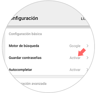 En la siguiente ventana selecciona la opción de "Guardar contraseñas" para poder configurar las opciones.