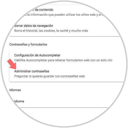 Como verás se te han desplegado nuevas opciones así que busca el apartado de “Contraseñas y formularios” y selecciona “Administrar contraseñas”