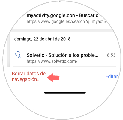 Verás un historial con todo aquello que hayas visitado. Tienes que seleccionar en la parte de abajo "Borrar datos de navegación"