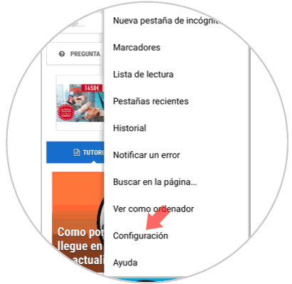 Abre tu navegador Google Chrome , pulsa el icono superior derecho de menú desplegable y pincha en “Configuración” para ver las funciones del navegador.