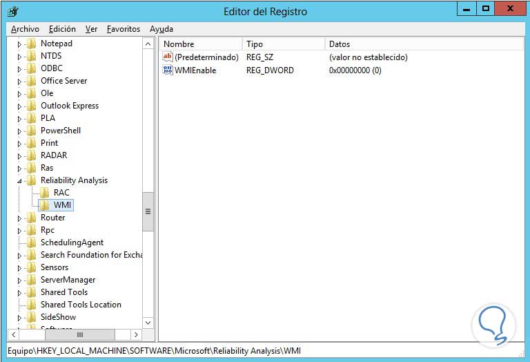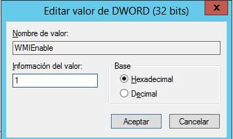 HKEY_LOCAL_MACHINE/SOFTWARE/Microsoft/Reliability Analysis/WMI/WMIEnableAllí daremos doble clic en WMIEnable y cambiaremos el valor del registro de cero (0) a uno (1).