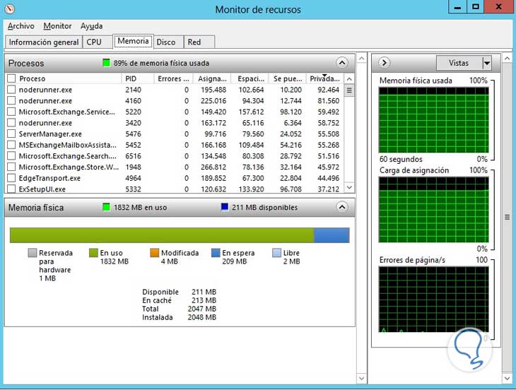 Una vez ejecutada esta opción se desplegará la siguiente ventana en la cual podremos visualizar y gestionar el rendimiento de nuestro servidor, veremos que tenemos disponibles las siguientes pestañas para administrar: