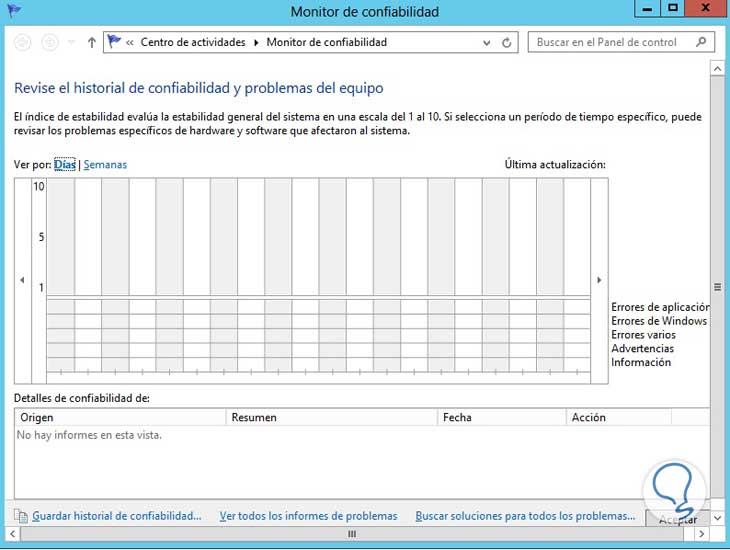 Para habilitar nuestro monitor de confiabilidad debemos realizar el siguiente proceso: