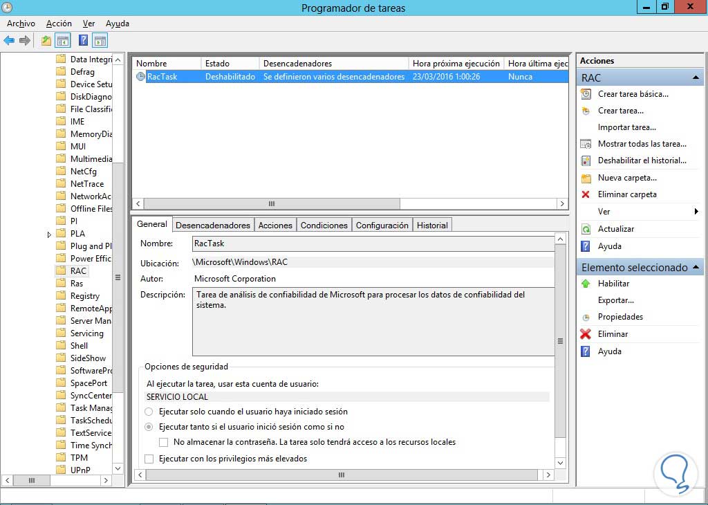Ir al programador de tareas y seguir la siguiente ruta: