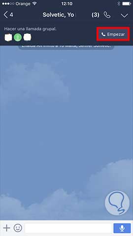 Una vez hemos realizado esto, tenemos que seleccionar el icono del teléfono situado en la parte superior de la pantalla en la esquina derecha. Una vez seleccionado, vamos a poder observar la opción de “empezar”. Debemos pulsar este botón para que la llamada grupal se inicie.