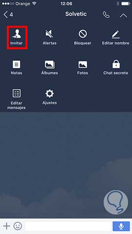 Lo primero que debemos hacer es crear un grupo con todas aquellas personas que queremos incluir en la conversación. Para ello abrimos el chat de una de ellas, y seleccionamos “Invitar” para poder invitar todas las demás personas que queremos formen parte de esta conversación.
