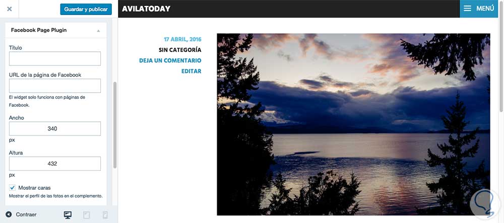 Para este ejemplo añadiremos el widget de Facebook simplemente haciendo clic sobre él en la lista