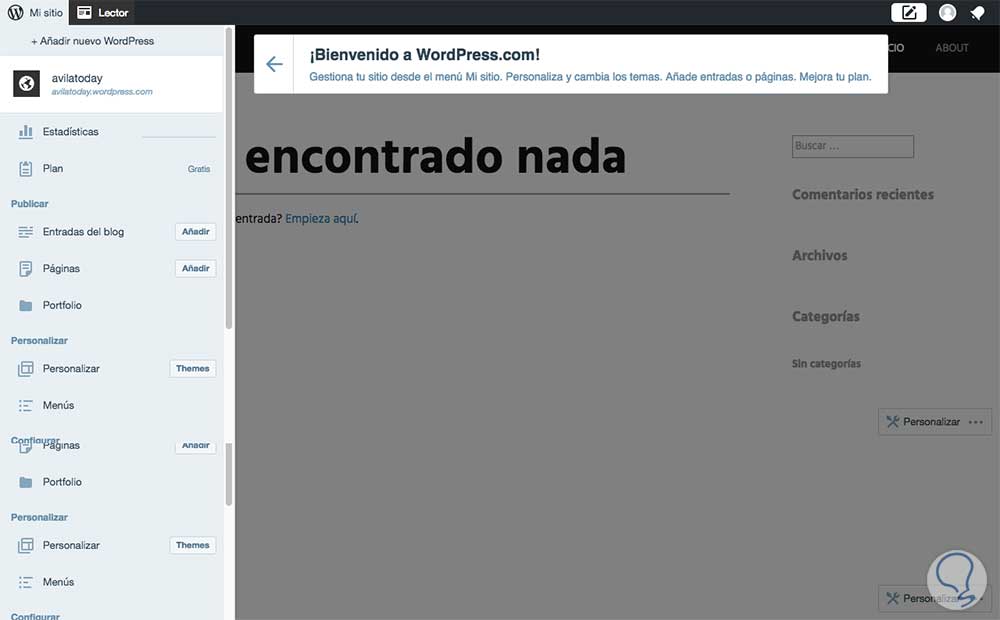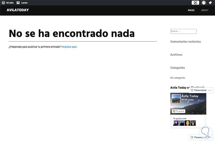 Hasta el momento no habrás hecho ninguna publicación por lo que tu blog se verá vacío. Esto puedes remediarlo de forma muy sencilla haciendo clic sobre “Empieza aquí”