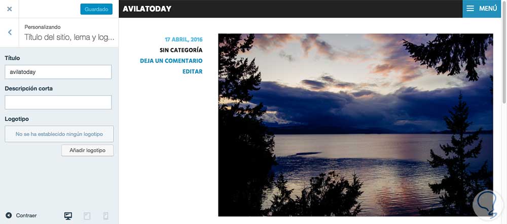 La primera opción que tendrás es “Diseño personalizado”, pero solo podrás hacer uso de esta opción si hacer uso del plan Premium. Luego tienes la opción “Título del sitio, lema y logotipo”. Al hacer clic sobre ella podrás editar los siguientes campos