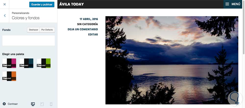 En “Colores y fondos” podrás cambiar el color de fondo o escoger una de las paletas de color que se te ofrecen