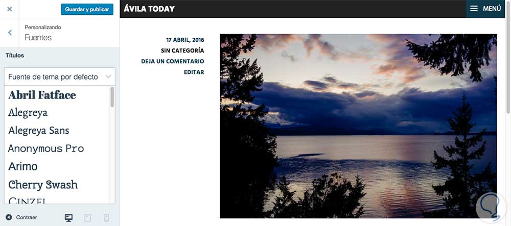 En “Fuente” podrás escoger los distintos tipos de letra que más te gusten