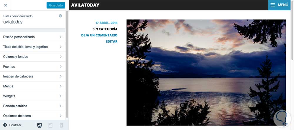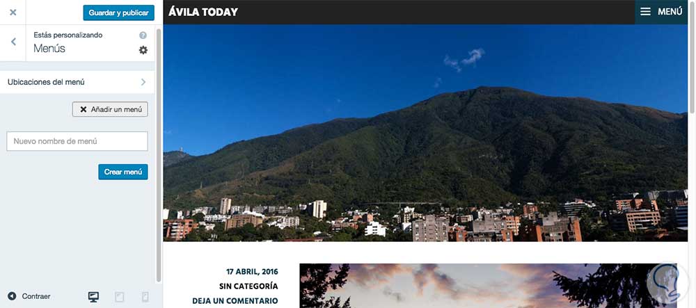Luego en “Menús” puedes añadir un menú personalizado con las diferentes secciones de tu blog o sitio web.
