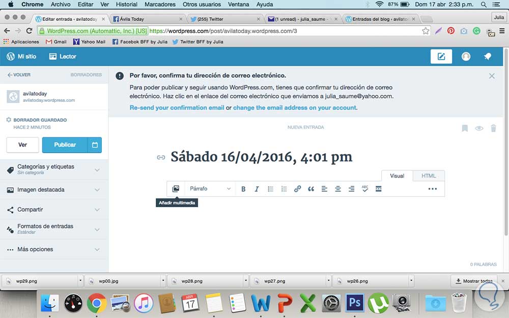 Como primera publicación, colocaremos un título y una imagen a través de “Añadir Multimedia"