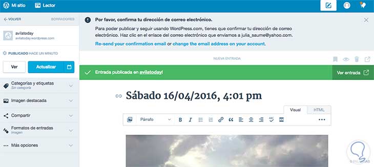 Puedes revisar cómo quedó tu publicación haciendo clic sobre “ver entrada” en la barra verde que habrá aparecido en el tope de tu ventana.