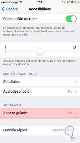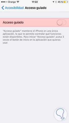 Por último debemos seleccionar si queremos activar la función rápida de accesibilidad o no. Una vez que hemos establecido todos estos ajustes, nuestro iPhone estará preparado para mantenerse bloqueado durante el acceso guiado.
