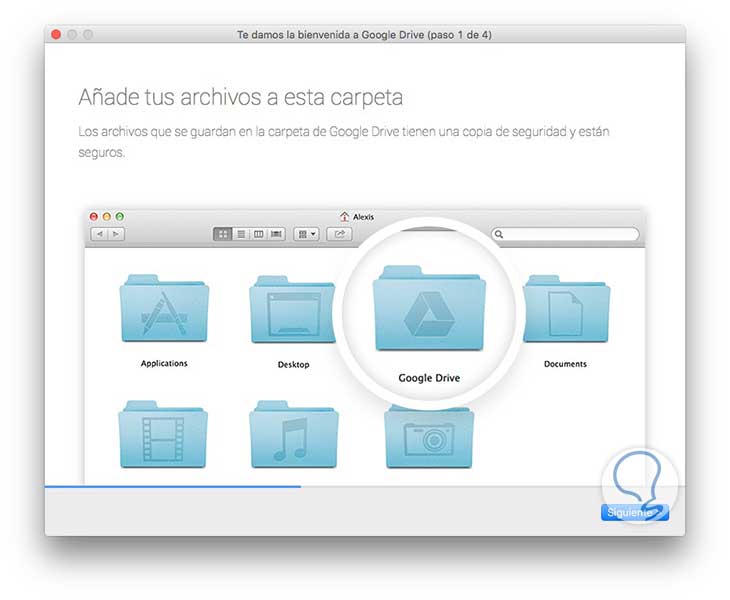 Una vez finalizada la instalación, aparecerá un asistente para darnos las bienvenida a Google Drive. Tenemos que seleccionar “Empezar”