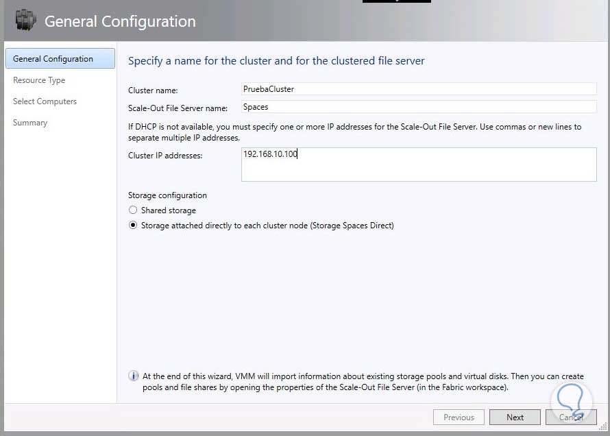 En este caso seleccionamos la segunda opción (Storage Spaces Direct).