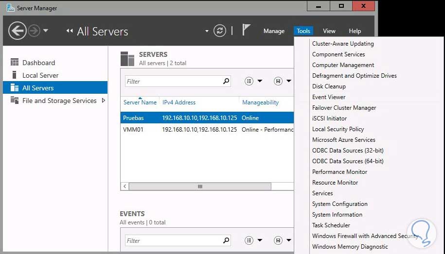1) Abrimos la opción Failover Cluster Manager o Administración de la conmutación por error del menú Herramientas o Tools.