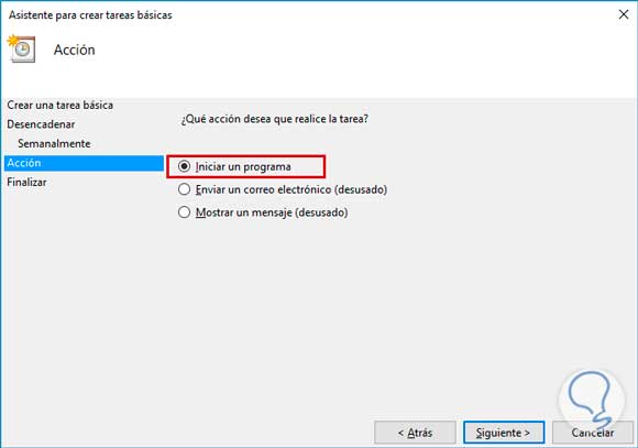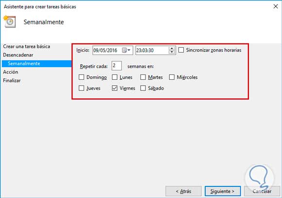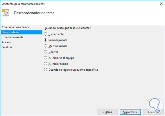 En la siguiente ventana te pedirá que marques la frecuencia con la que esta tarea se repetirá. Nosotros te recomendamos semanalmente para que no se ejecute todos los días, pero puedes customizarlo según prefieras.