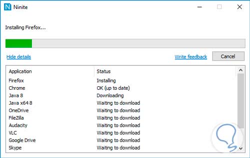 Una vez se ha descargado el instalador, ábrelo para comenzar. Como verás se comienzan a descargar todos aquellos programas que hayas seleccionado en el paso anterior. Cuando acabe el proceso tendrás tus nuevos programas en tu Windows 10.