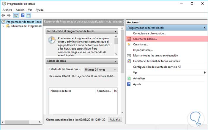 Ahora selecciona Crear tarea básica en el menú de la derecha que encontrarás.
