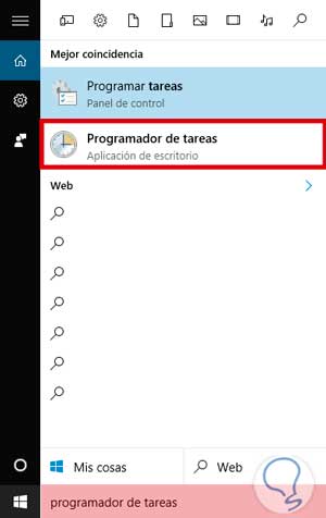 Una vez has utilizado el archivo de ejecución como instalador, pasará a ser el ejecutable de actualización por lo que cada vez que lo abras buscará actualizaciones en los programas descargados a través de él. Para evitar tener que andar abriéndolo, vamos a automatizar esta acción. Para ello dirígete al programador de tareas de Windows 10 escribiéndolo en el buscador .
