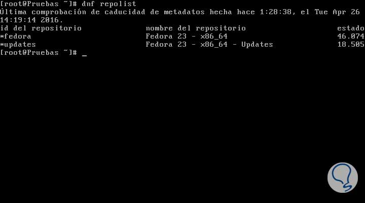 dnf repolistObservamos el ID del repositorio, su nombre y la cantidad de paquetes que hay disponibles en dicho repositorio.
