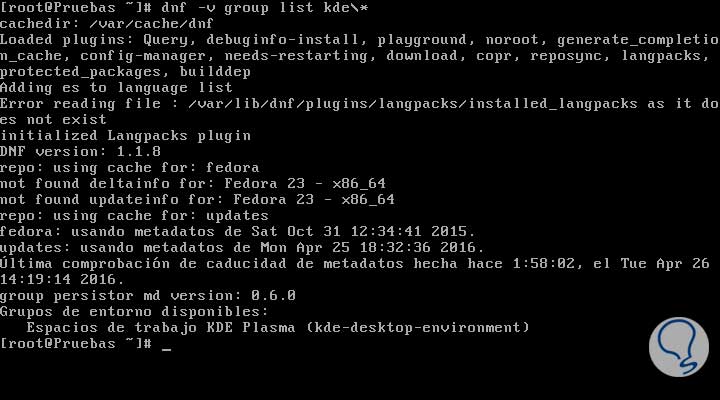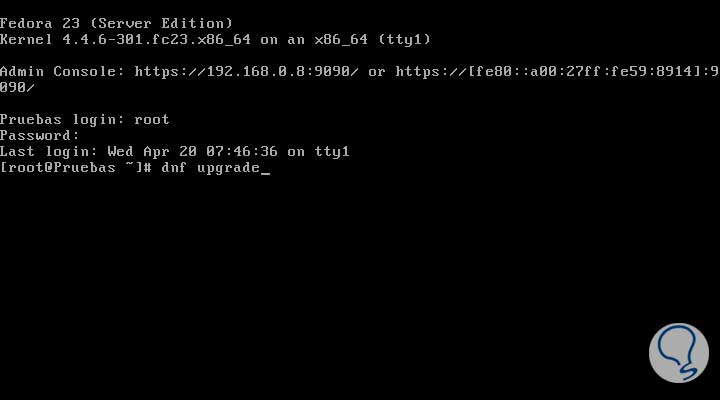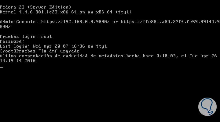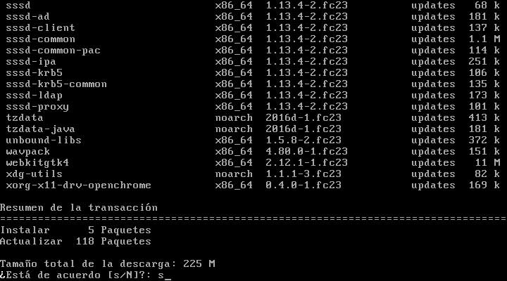 Una de las maneras más prácticas de buscar actualizaciones para nuestro Fedora 23 es usar el comando: