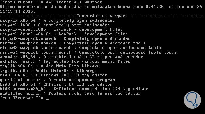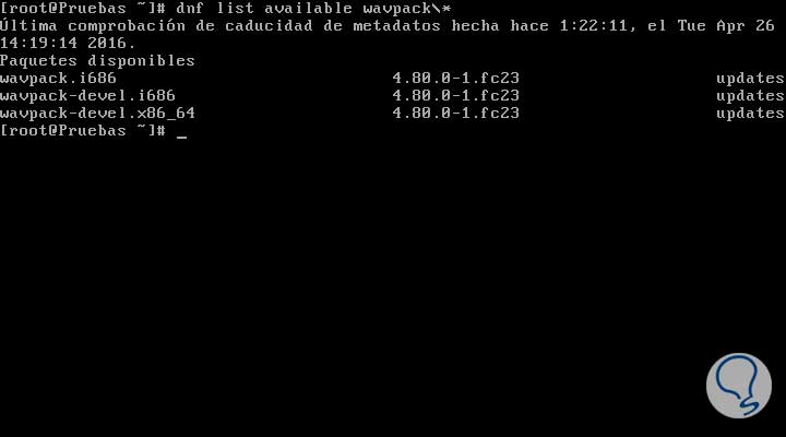 dnf list available wavpack\*Se desplegará lo siguiente.