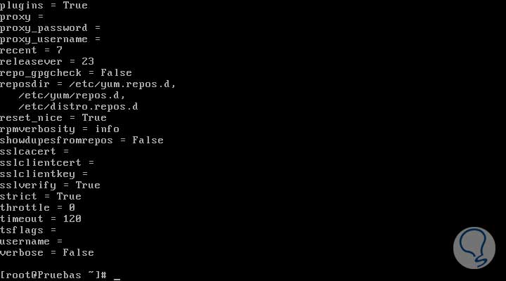 Podemos ver el contenido del archivo dnf.conf usando el comando:
