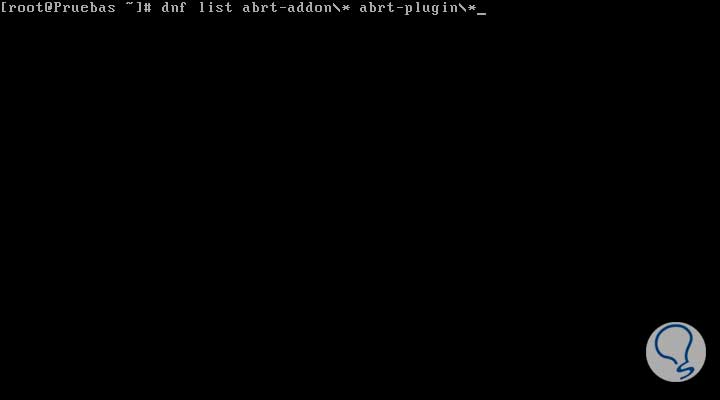 Otro ejemplo, podemos filtrar todas las adiciones y plug-ins ABRT, para ello ingresaremos el siguiente comando: