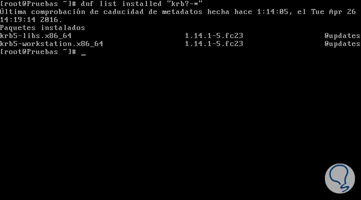 dnf list installed “krb?-*”Para filtrar por todos los paquetes que sean krb.