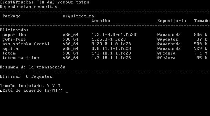 dnf remove package_nameAsí mismo podemos remover diversos paquetes usando el comando: