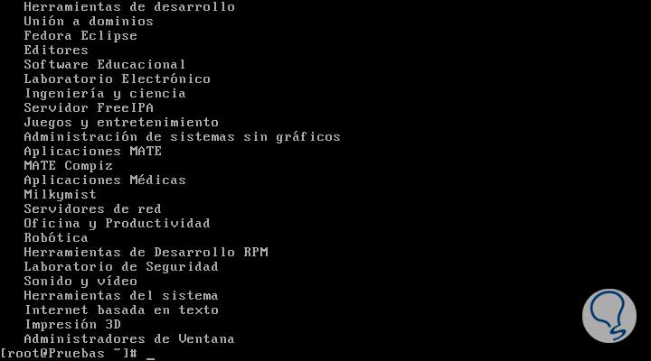 dnf group install group_namePara instalar un grupo usando su ID ejecutaremos el comando: