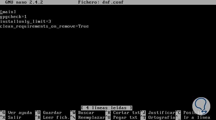 /etc/dnf/dnf.confDesde esta ubicación podremos ejecutar modificaciones en dicho archivo.