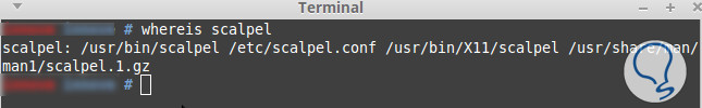 A continuación deberemos configurar Scalpel para ello podemos ubicar el archivo de instalación mediante el siguiente comando: